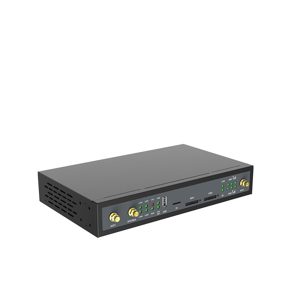 • Enterprise-Grade Standard Hardware: 2 x CAT4/6 LTE modules, 2 x SIM card slots, 1 x TF card slot, 1 x USB2.0 port, PoE, 5 x Gigabit ports