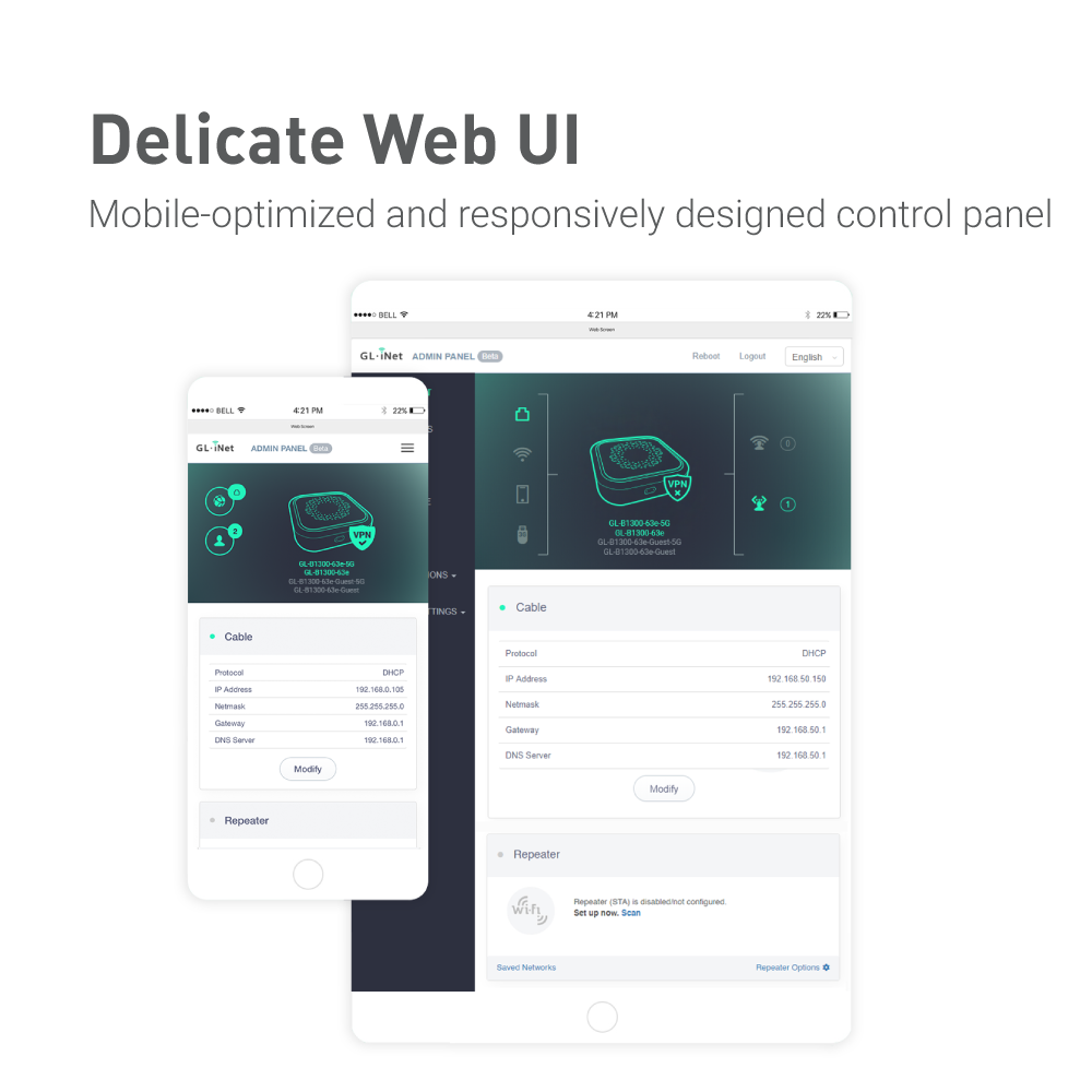 Convexa-B (GL-B1300) is a remarkable product in order to satisfy the wireless Internet access demand for both commercial and home users. It will be your best choice for enjoying wireless Internet surfing. It provides the best encryption and authentication with OpenVPN. Meanwhile, WireGuard® gives privacy-minded users a fast and simple VPN that utilizes state-of-the-art cryptographic…