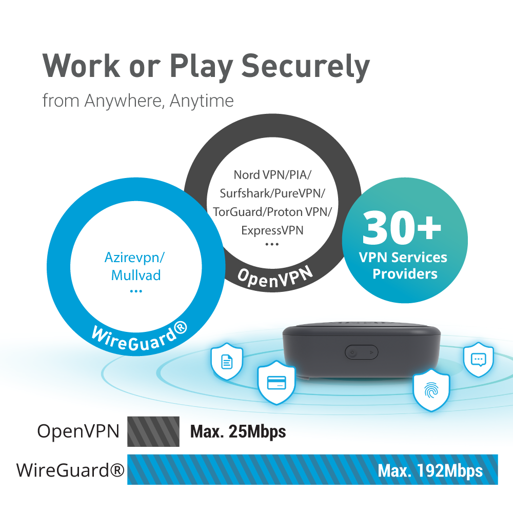 • Security & Privacy: OpenVPN and WireGuard pre-installed, compatible with 30+ VPN service providers. Cloudflare DNS over TLS can prevent eavesdropping and manipulation of DNS data via man-in-the-middle attacks.