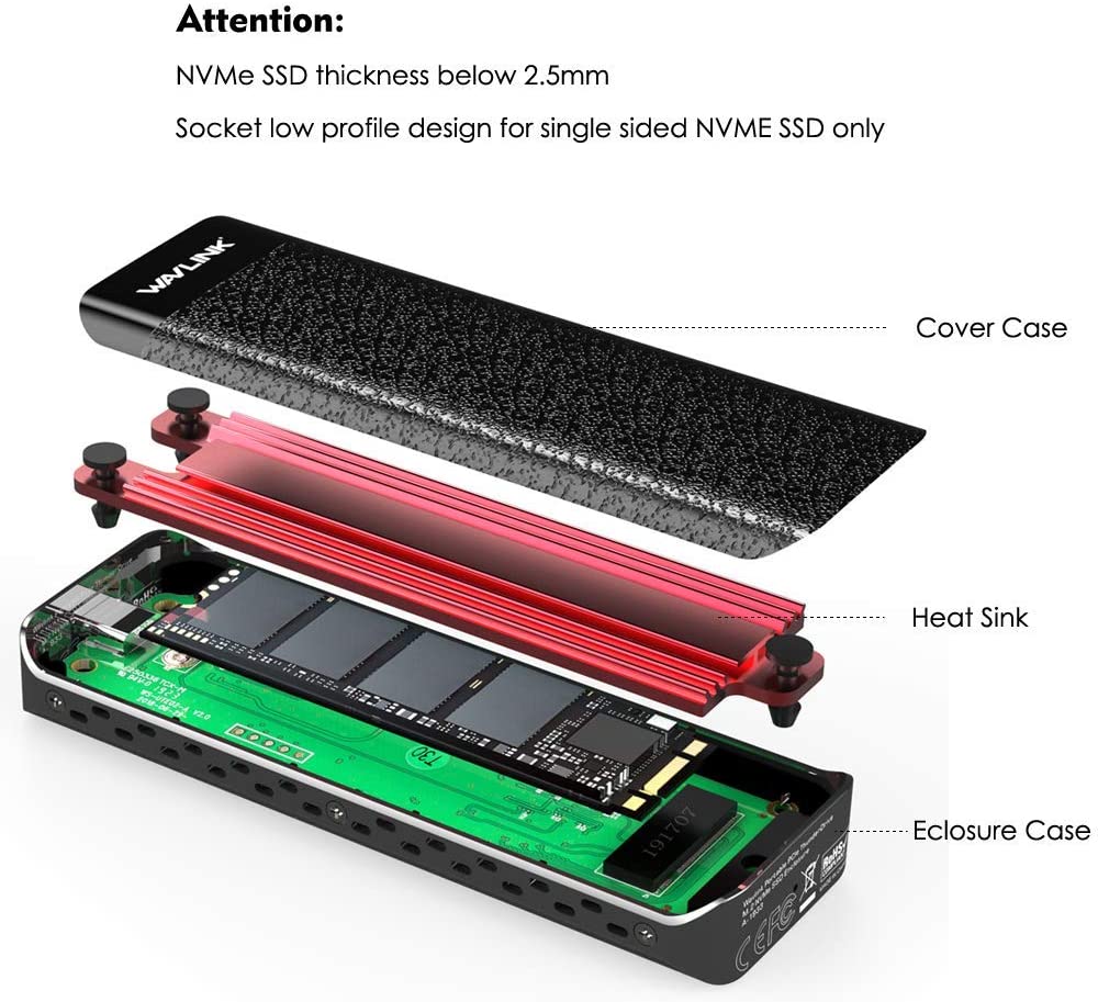 - Only compatible with NVMe SSD thickness below 2.5mm, socket low profile design for single sided NVME SSD only. Doesn’t support M.2 SATA SSDs, M.2 PCIe AHCI SSDs, or any other M.2 non-NVMe devices. Note:The running power of the SSD needs to be below 10W